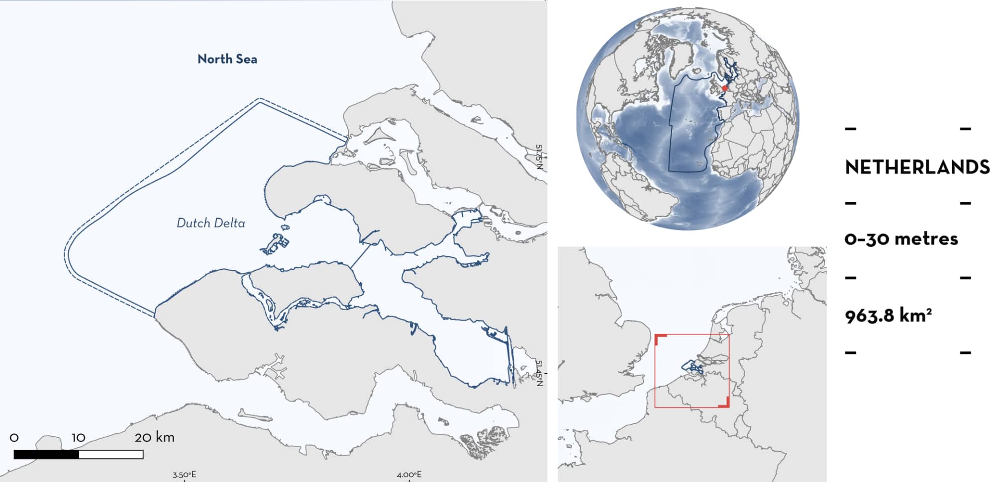 Dutch Delta is located in the southwest of the Netherlands. This area comprises the shallow sea part of the Zeeland and South Holland Delta with an estuary (Westerschelde) and a partially closed sea arm (Oosterschelde). The area is characterised by a varied and dynamic environment of coastal waters (salt), intertidal zone, and beaches, which forms a relatively sheltered transition zone between the (former) estuaries, and the high seas (EEA 2025a, 2025b, 2025c). The area is influenced by the Delta Works – a series of storm surge barriers, dikes, dams, and sluice gates – which has extensively changed the region, creating a system of tidal and deep sandbanks connected by deep channels (EEA 2025a; Netherlands 2025). Erosion and sedimentation processes cause shifts in the size of the intertidal areas. The area has extensive reefs of Blue Mussel Mytilus edulis and Pacific Oyster Crassostrea gigas.