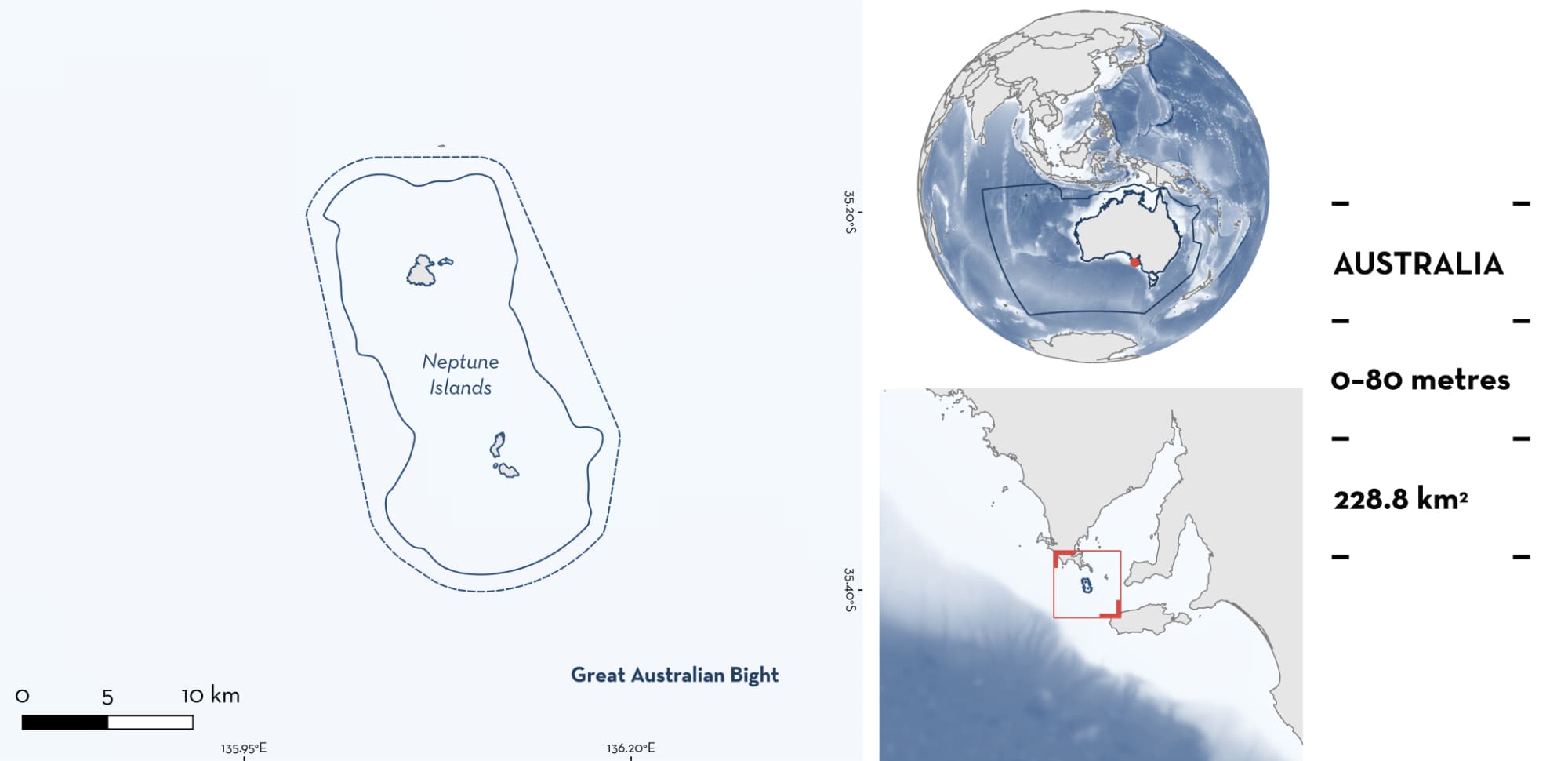 The area overlaps with the Neptune Islands (Ron and Valerie Taylor) Marine Park and the Neptune Islands Conservation Park (NPWS SA 2025).