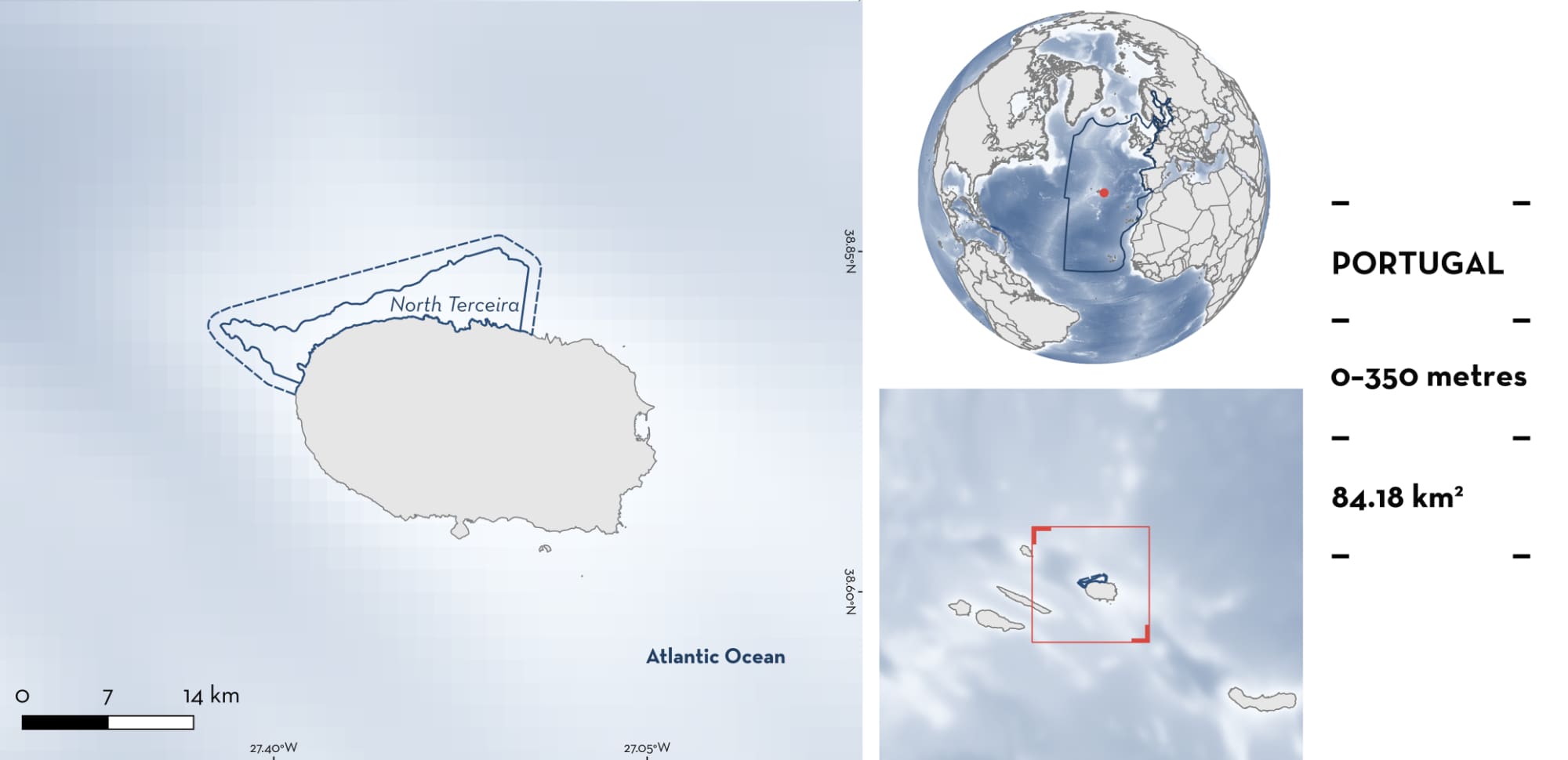 North Terceira is located in the central Azores Archipelago, an autonomous region of Portugal. It is found on the north side of Terceira Island. The coastline is characterised by the presence of bays and inlets with a narrow shelf and a steep slope with rocky areas (EEA 2025).