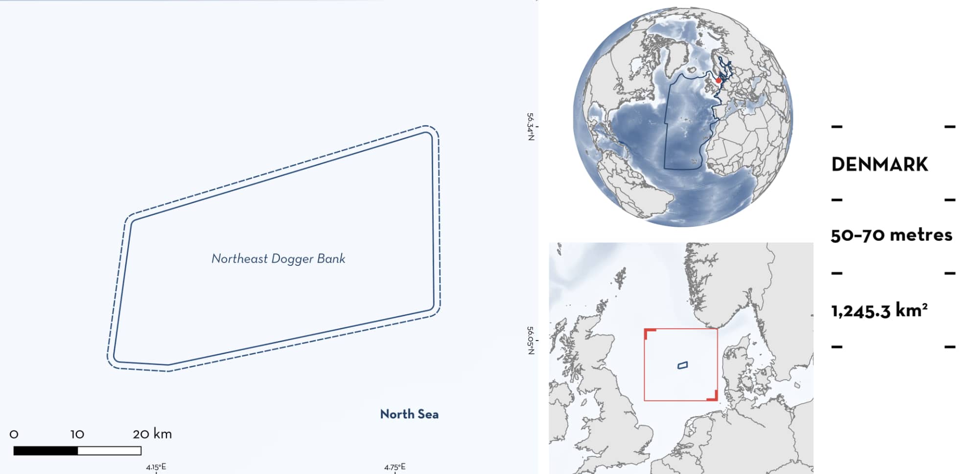 Northeast Dogger Bank is located in the central North Sea, within the Danish Exclusive Economic Zone. The area is situated within the easternmost extent of Dogger Bank, an extensive raised sandbank (Diesing et al. 2009), characterised by a dominance of sandy substrate.