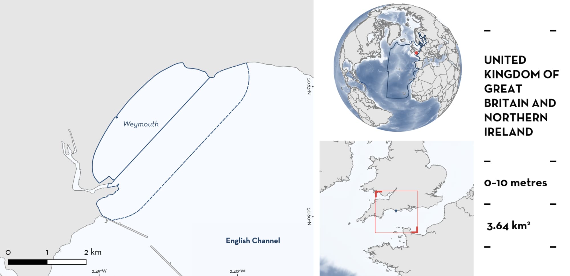 Weymouth is located on the southern coast of England, United Kingdom of Great Britain and Northern Ireland. This area is a sheltered bay characterised by sandy and rocky beaches. It is influenced by the English Channel and the mouth of the River Wey. Within this area there are: reproductive areas (Small-eyed Skate Raja microocellata).